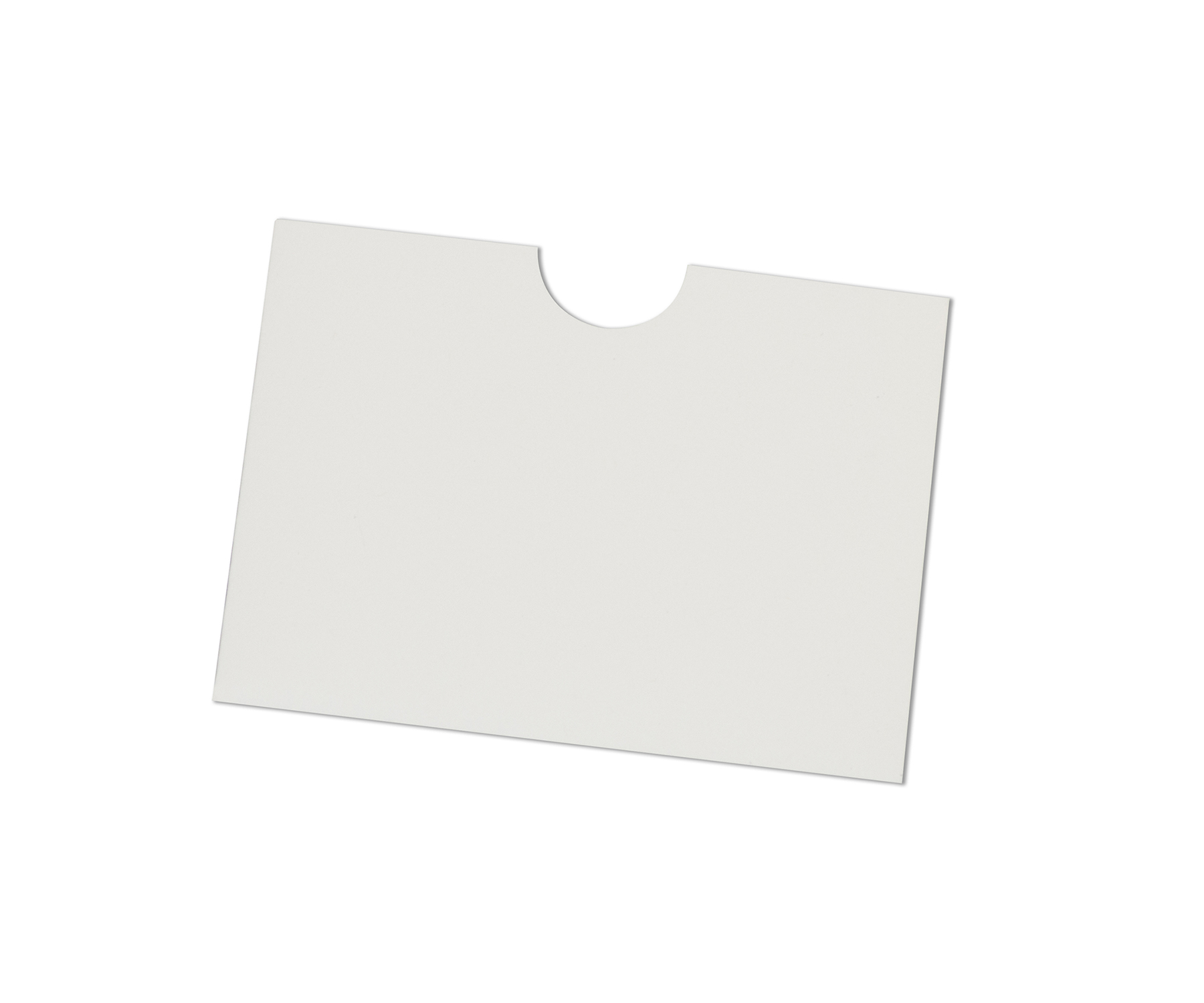 Custom printed gift card sleeve with thumb cuts. Gift card holder with single sleeve, thumb cut top.